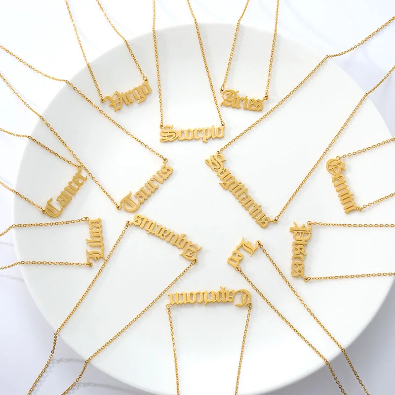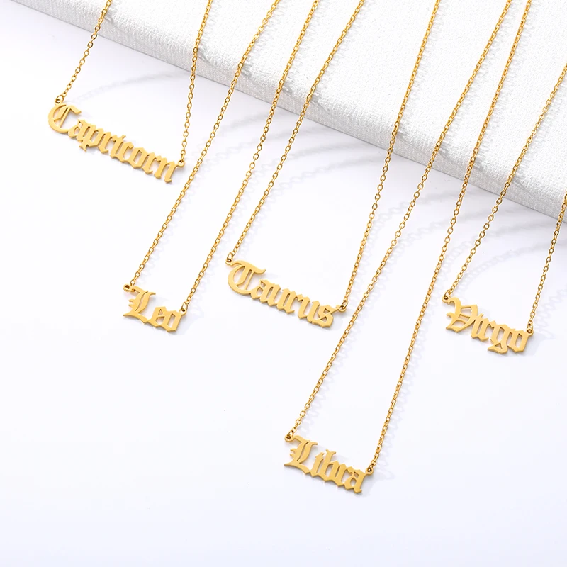 12 Zodiac Letter Constellations English Letter Necklace For Women Men Virgo Scorpio Sagittarius Capricorn Aquarius Birthday Gift