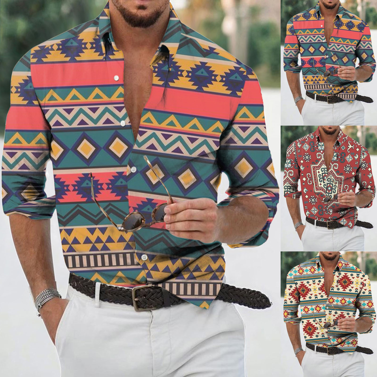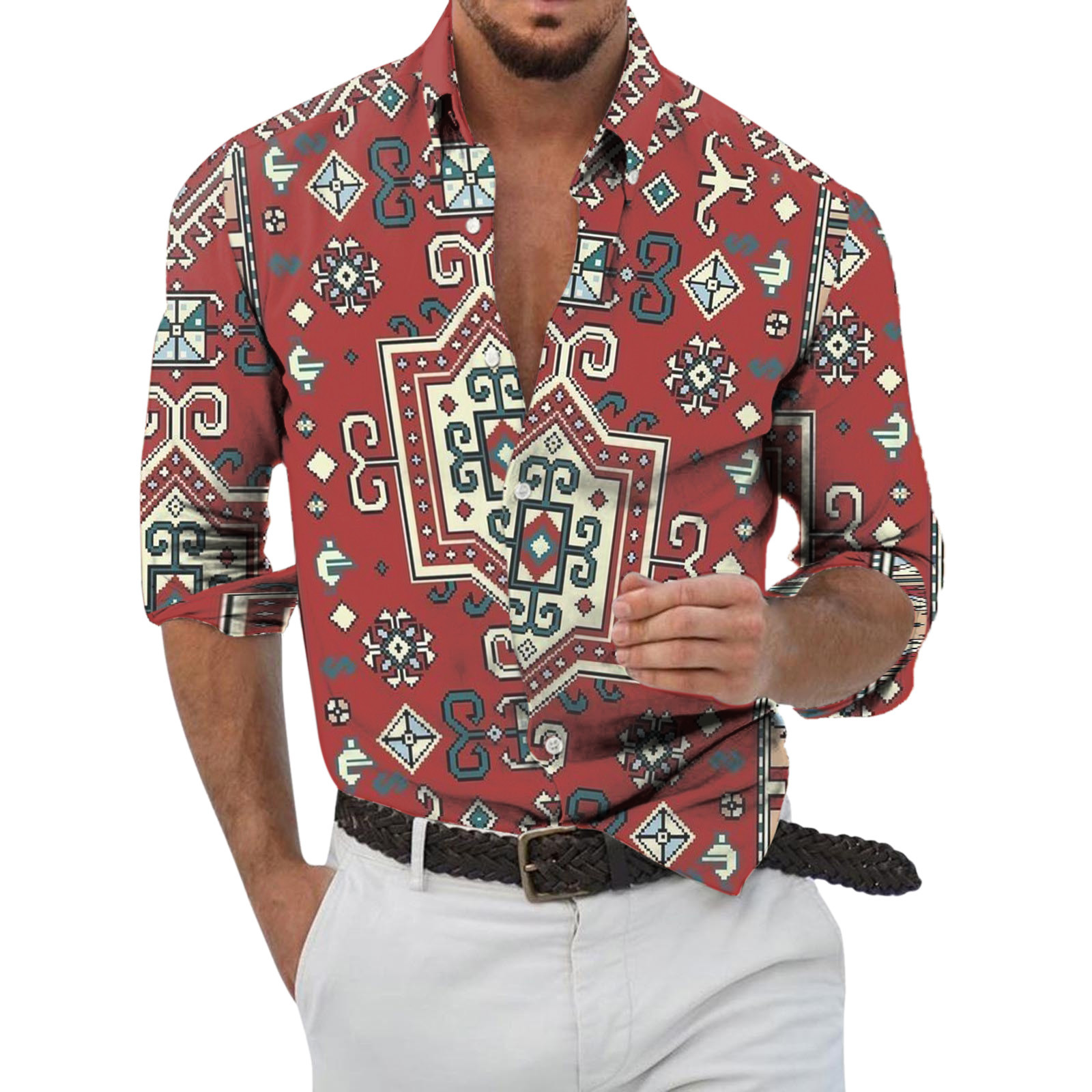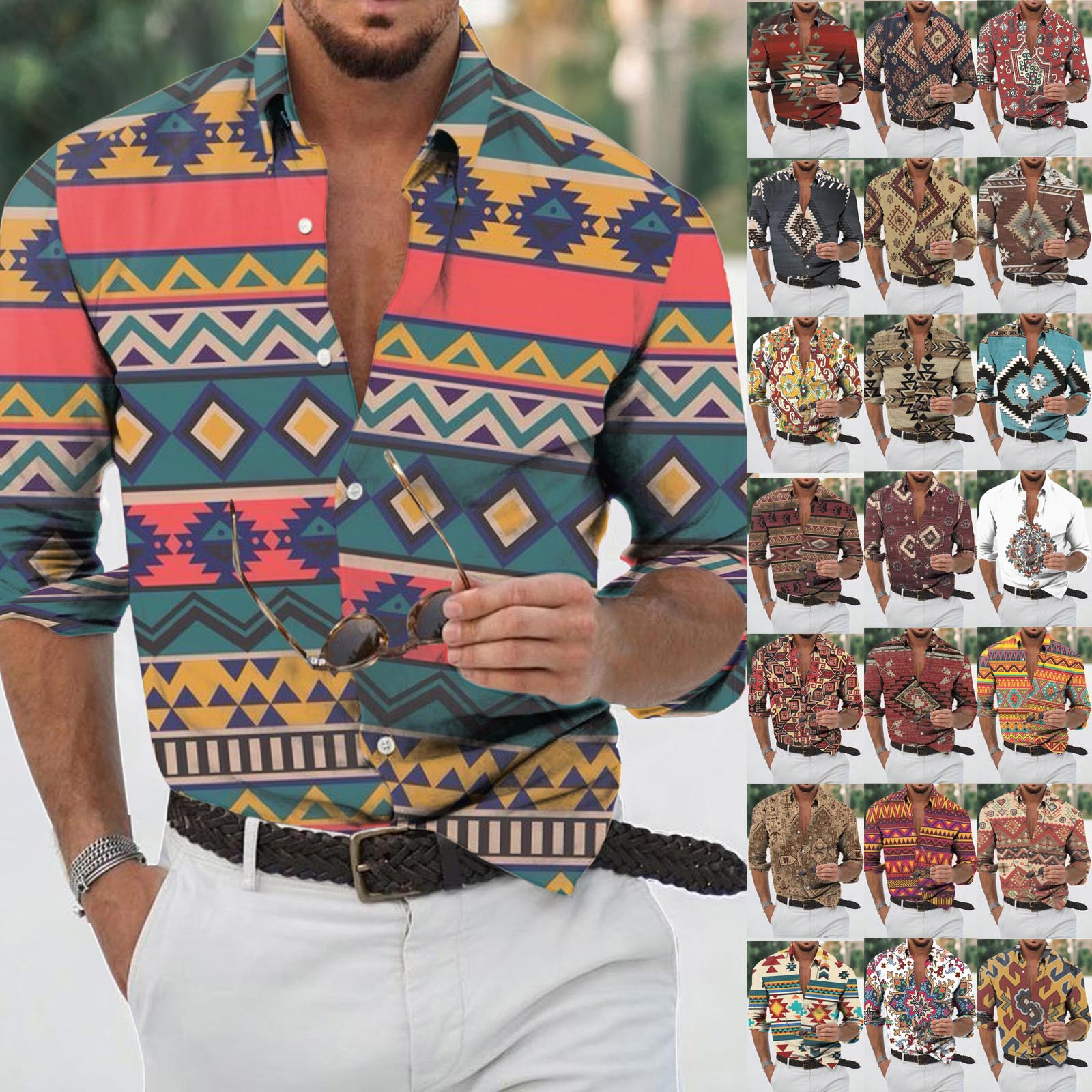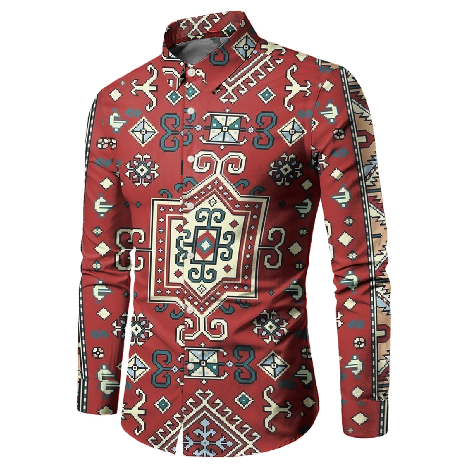 Men Fashion Casual Fashionable Azik Print 3D Digital Printing Lightweight Breathable Long Sleeve Lapel Formal Shirt