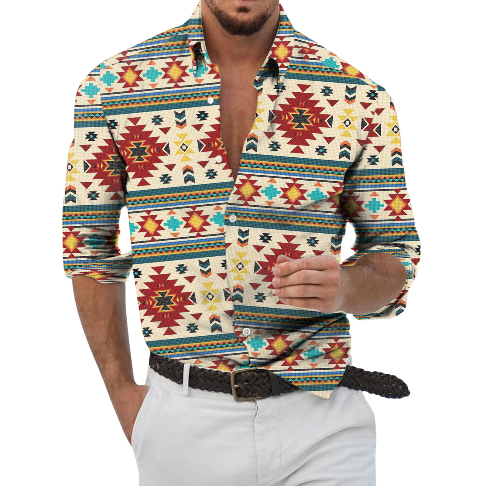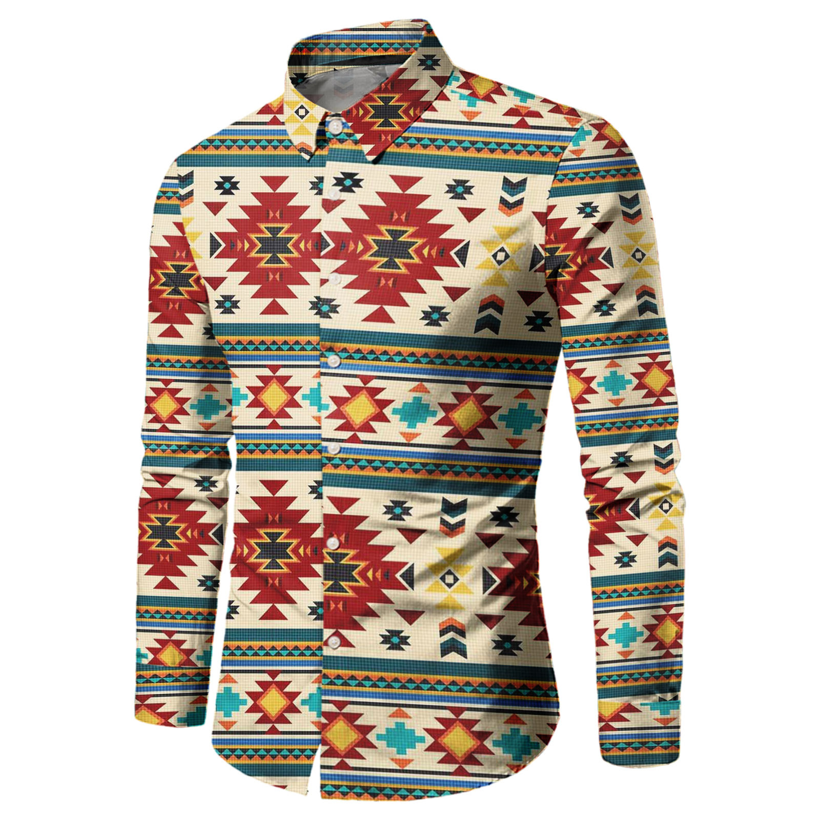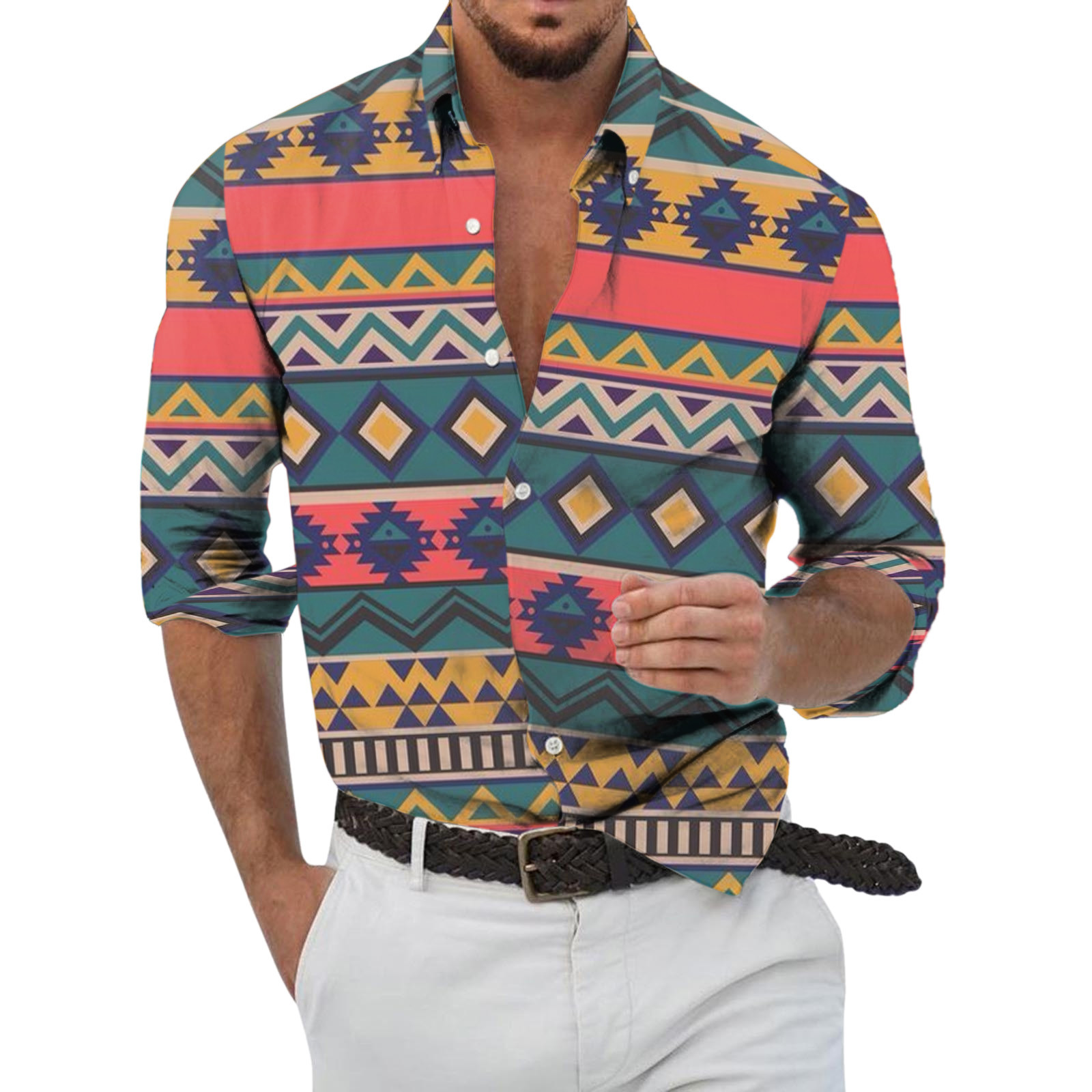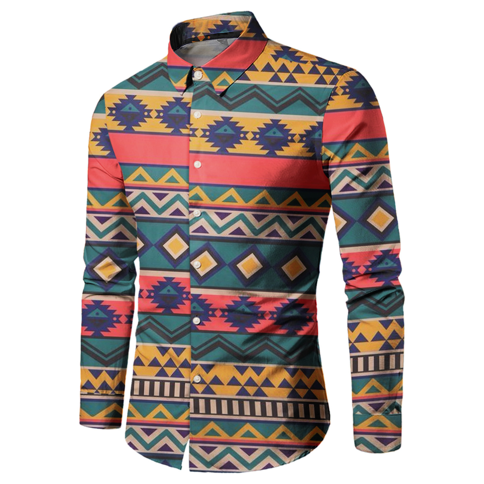 Men Fashion Casual Fashionable Azik Print 3D Digital Printing Lightweight Breathable Long Sleeve Lapel Formal Shirt
