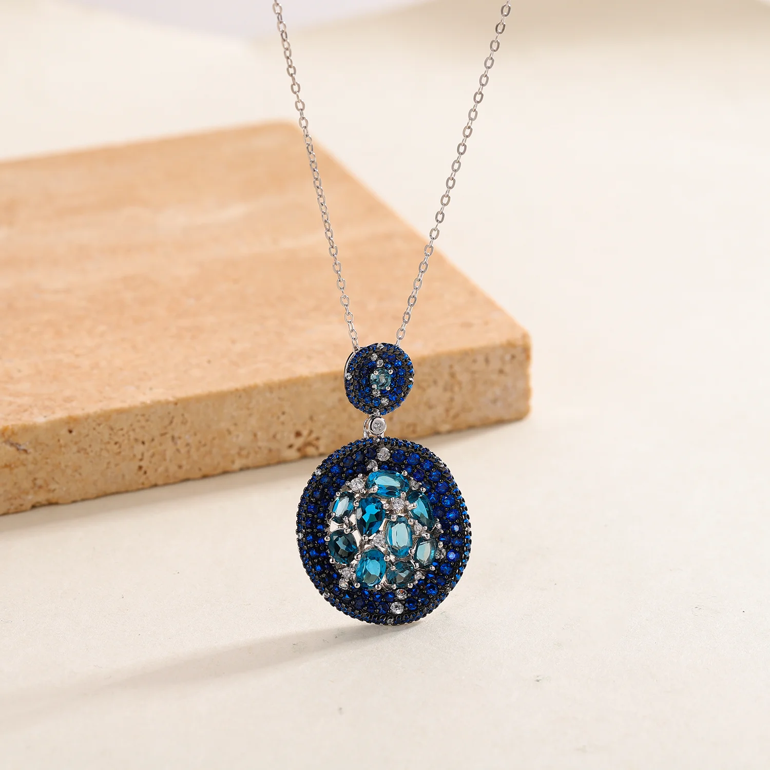 925 Sterling Silver Water Drop Blue Opal Necklaces for Women Geometirc Necklaces & Pendants Jewelry Gift (JewelOra NE103210)
