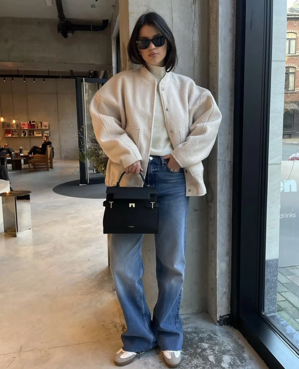 Dark Blue Cropped Jacket Women Long Sleeves Big Pockets Jacket Chic Lady High Street Casual Coats Top Female 2023 New