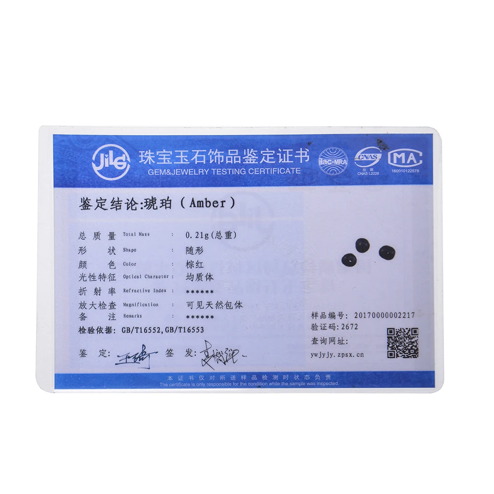 | Certificate Number | Amber necklace |