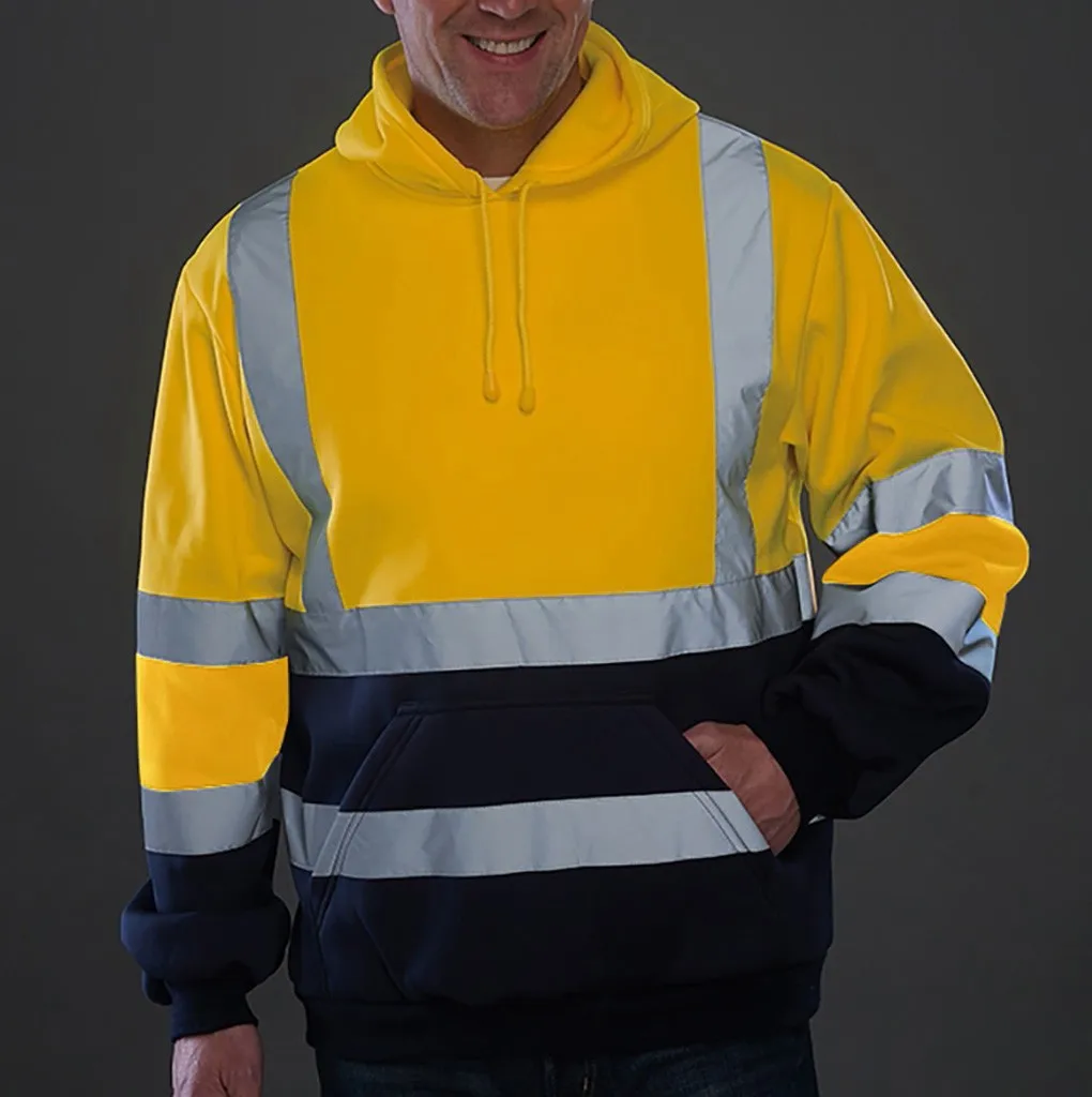 Mens Road Work High VisibilityPullover Long Sleeve Hooded Sweatshirt Tops Blouse