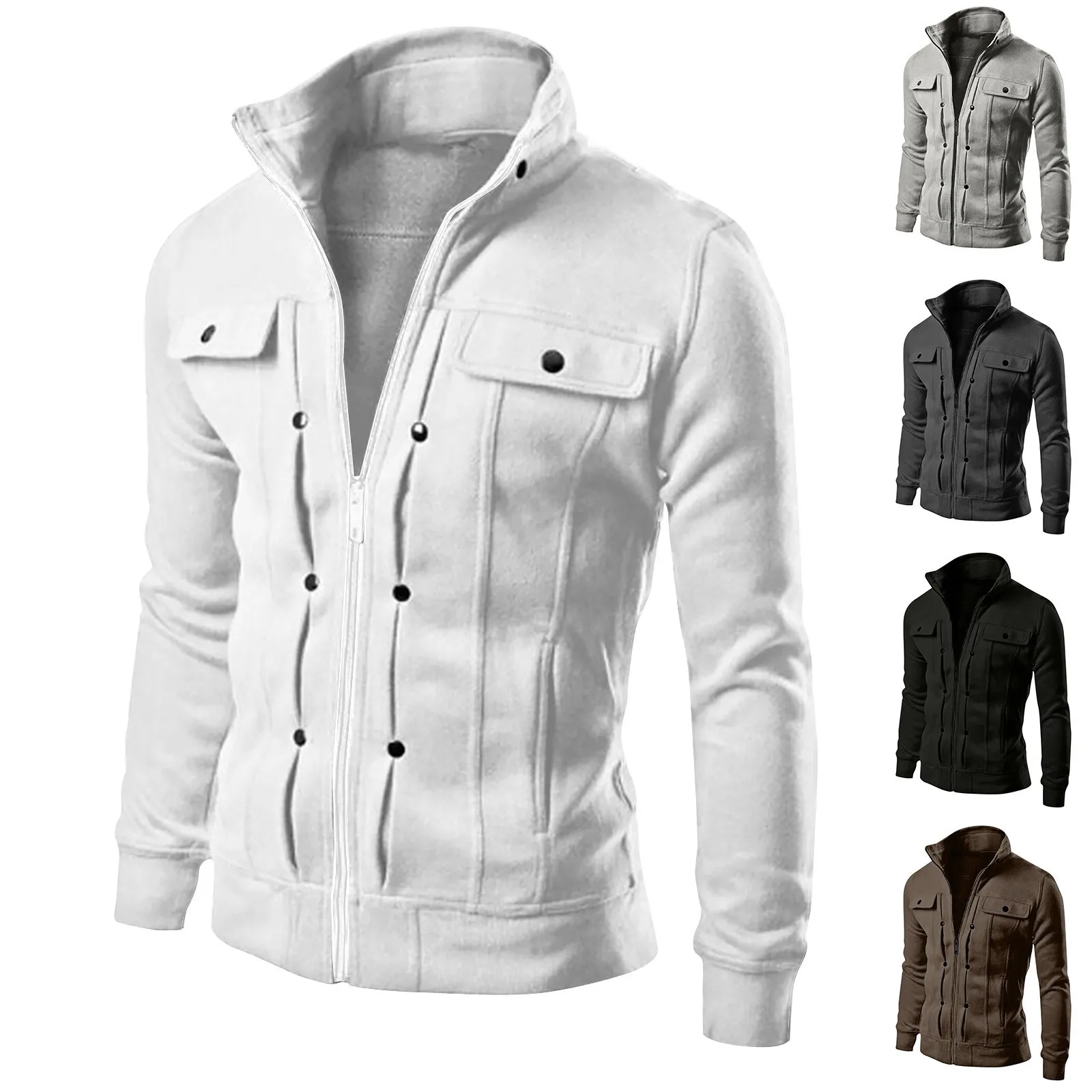Men’s Fashion Casual Loose Stand Collar Button Decorated Sweatshirt Jacket