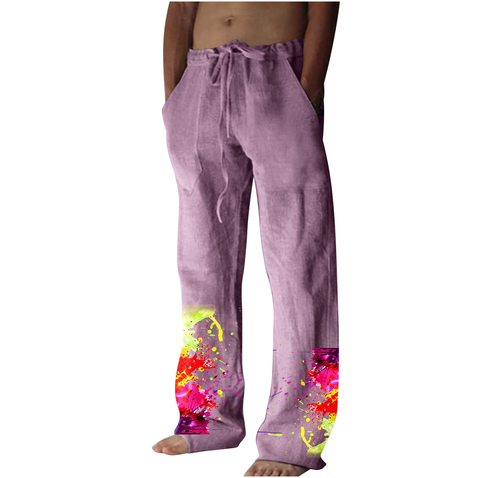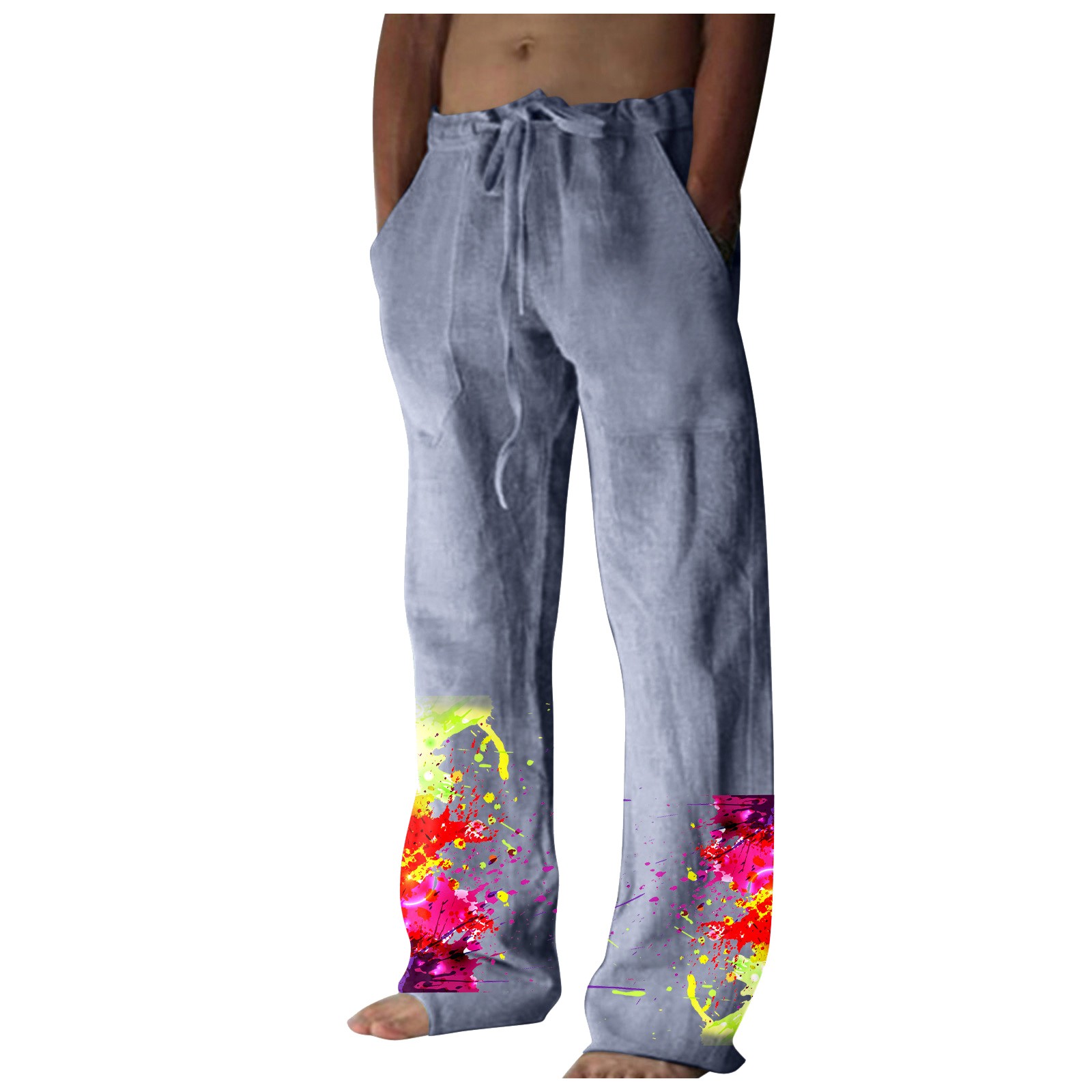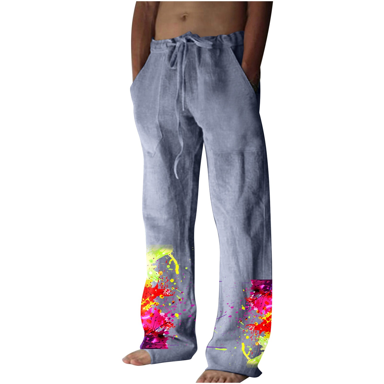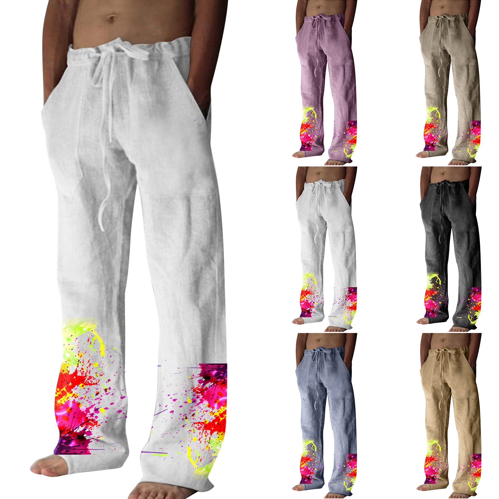 Men’s Printed Casual Linen Pants Loose Straight Summer Beach Yoga Pants Breathable Sweatpants