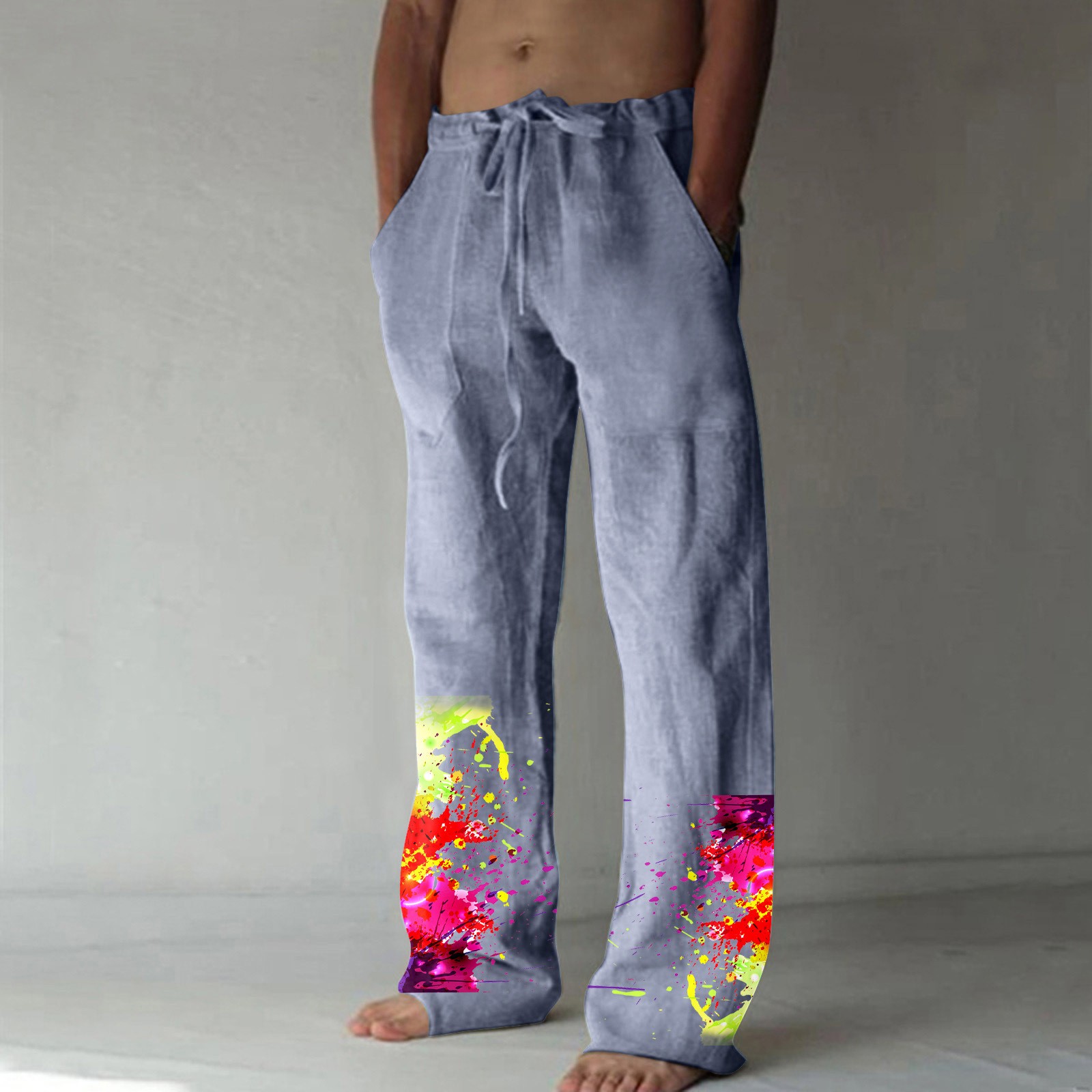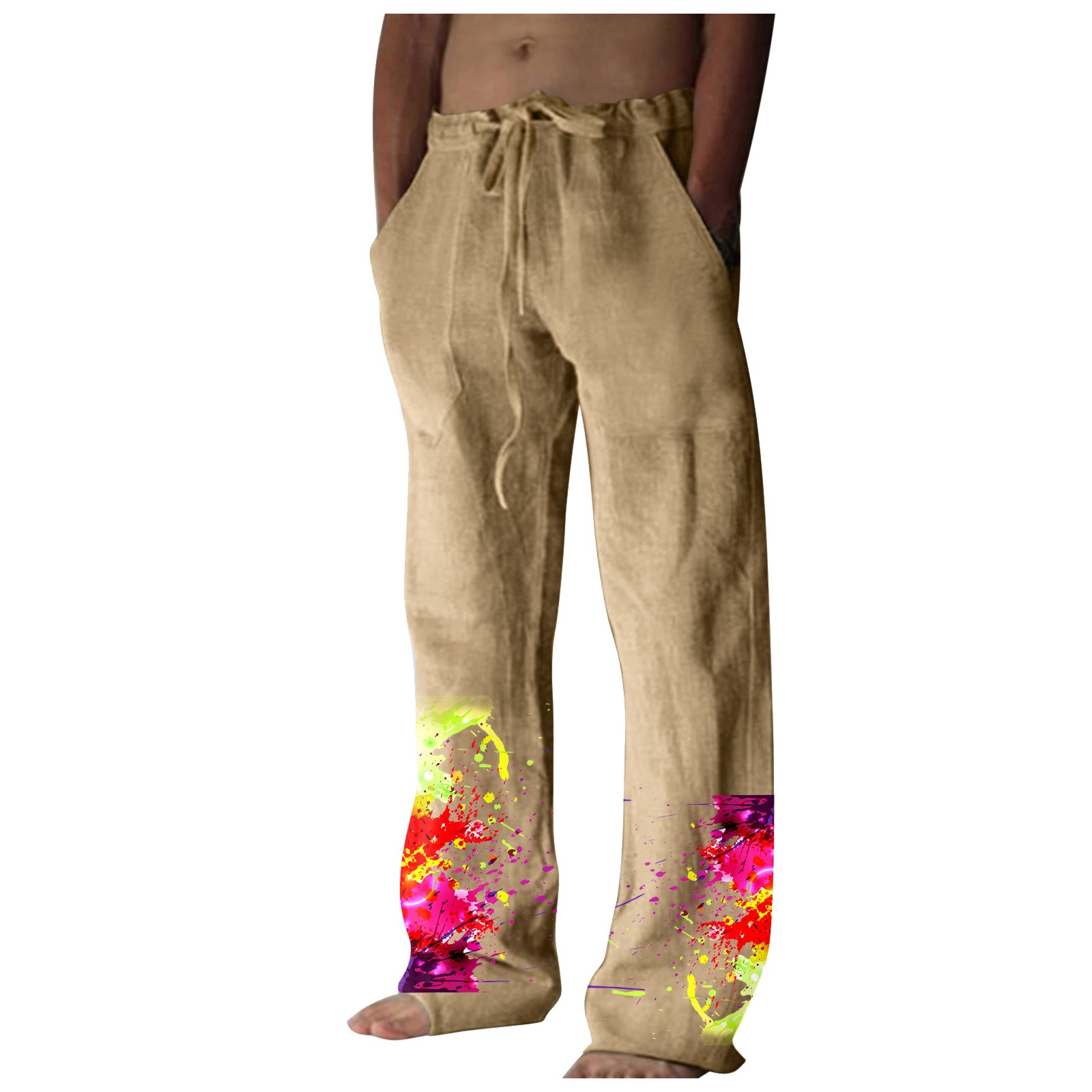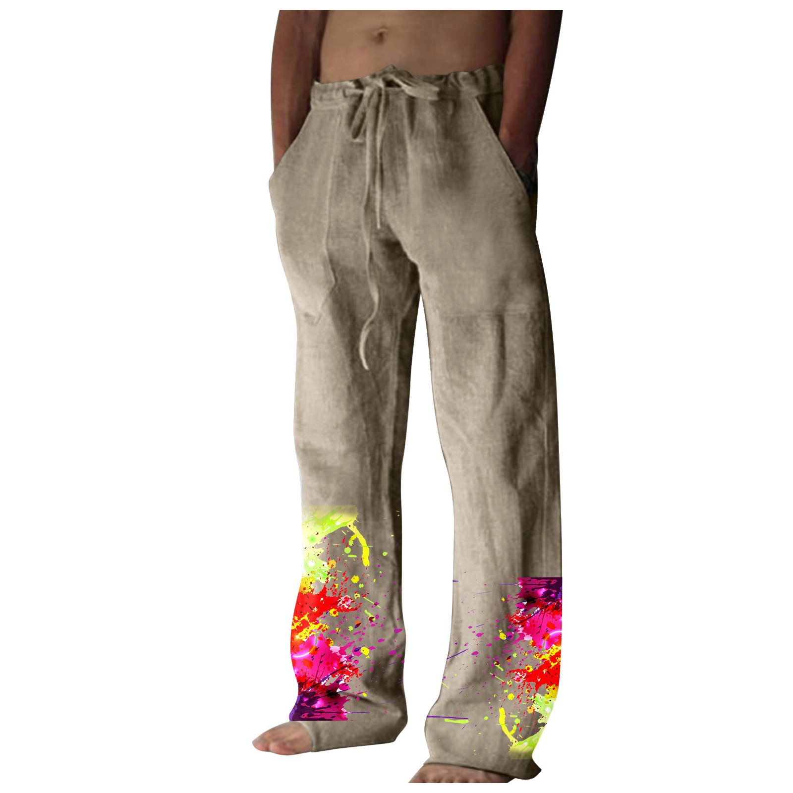 Men’s Printed Casual Linen Pants Loose Straight Summer Beach Yoga Pants Breathable Sweatpants