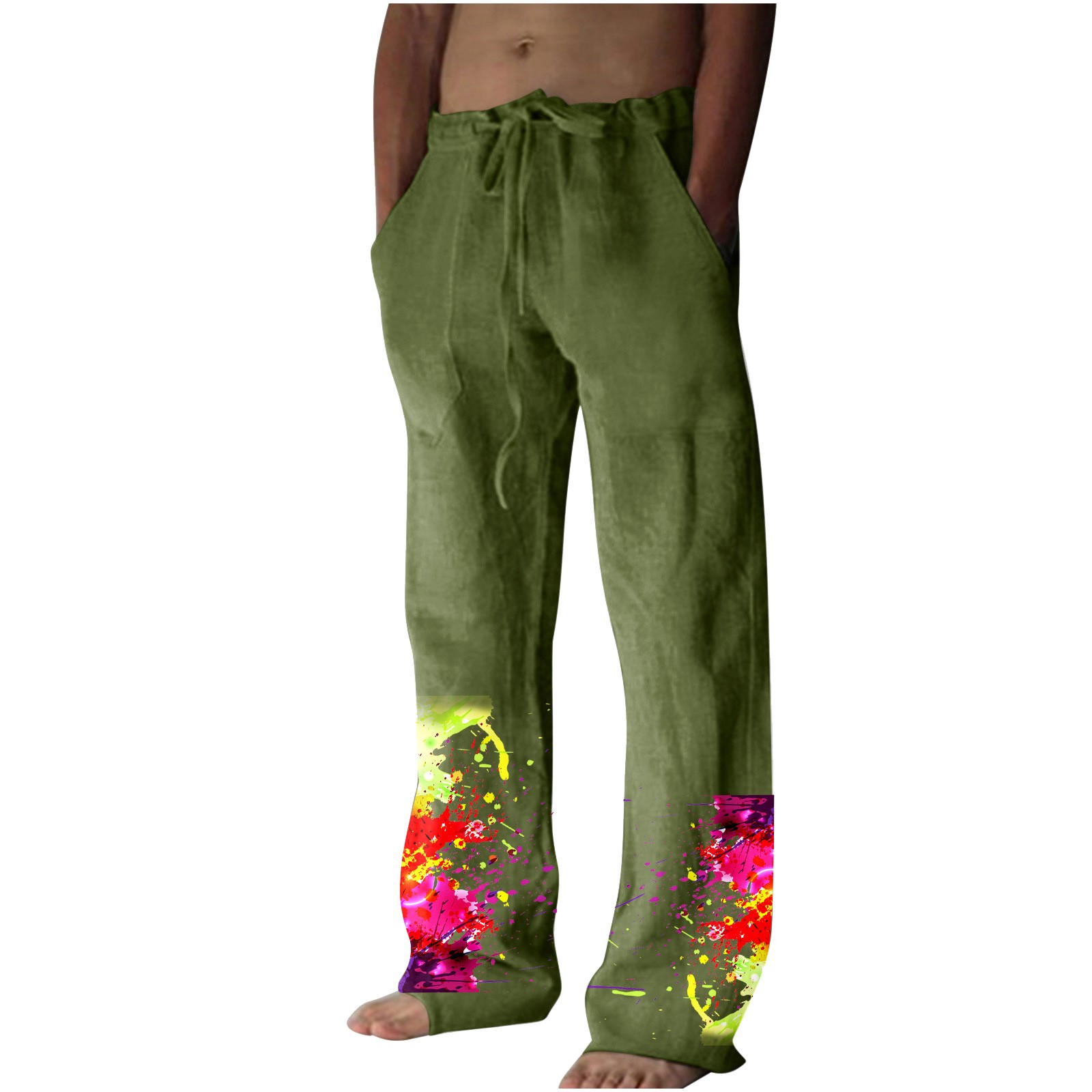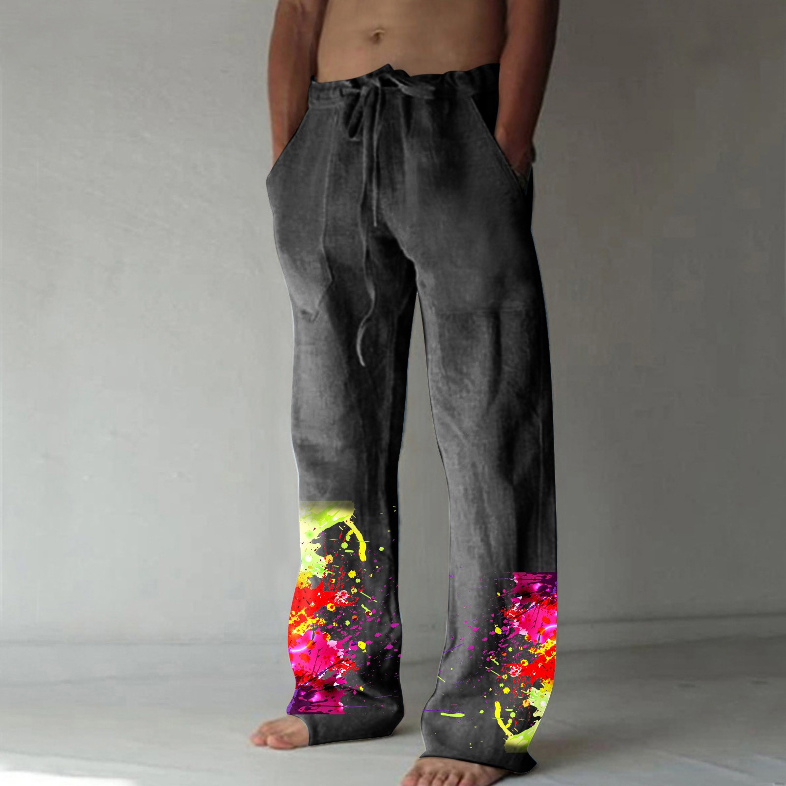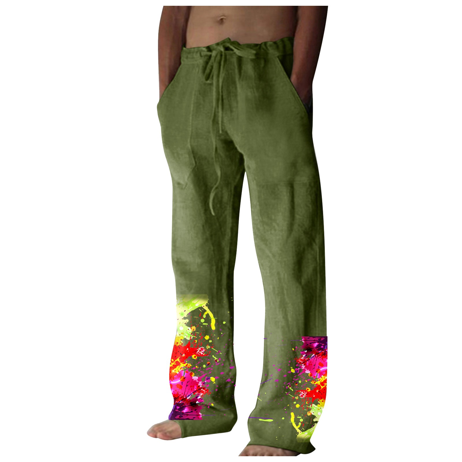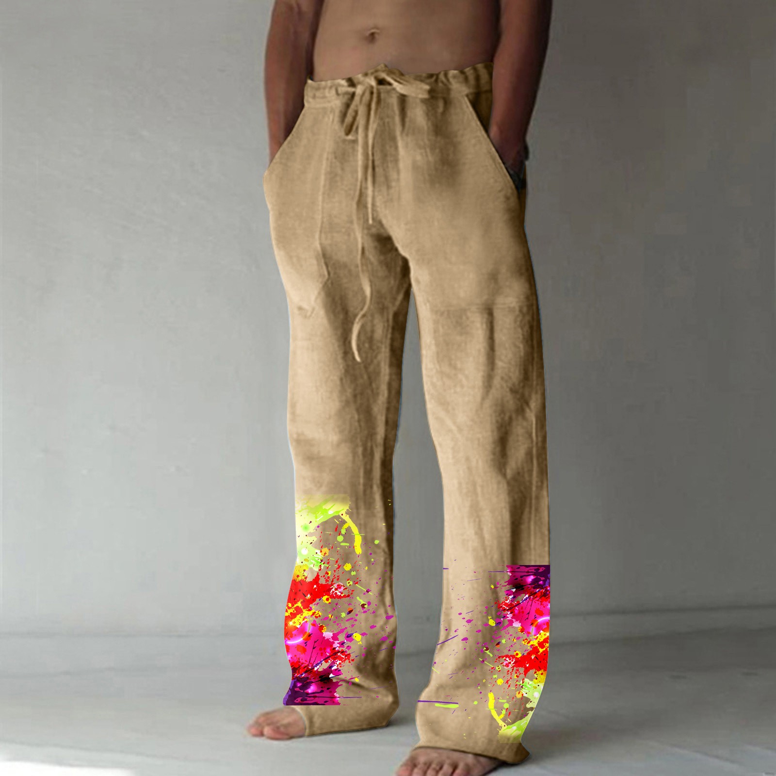 Men’s Printed Casual Linen Pants Loose Straight Summer Beach Yoga Pants Breathable Sweatpants