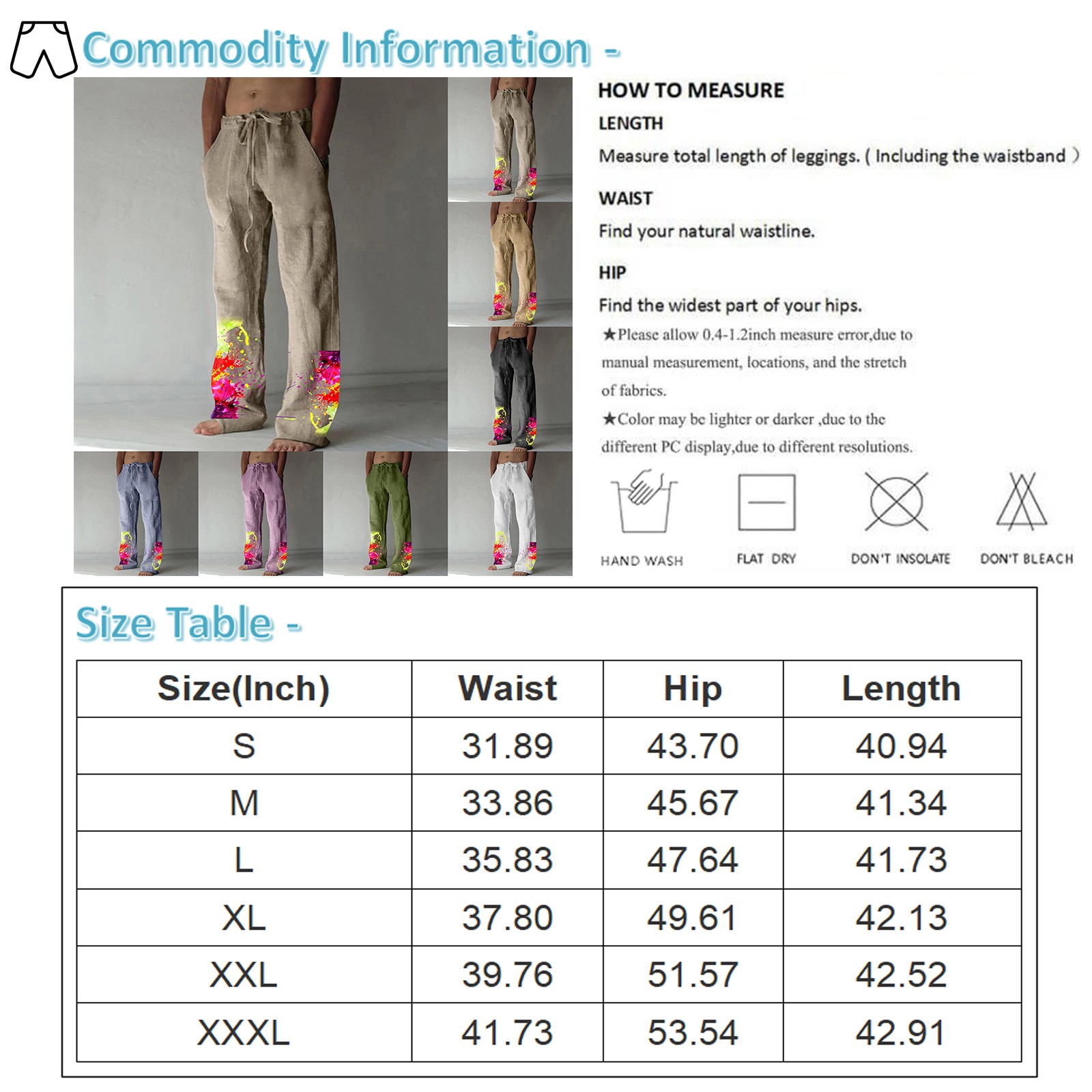 Package includes: 1 pair of men’s pants