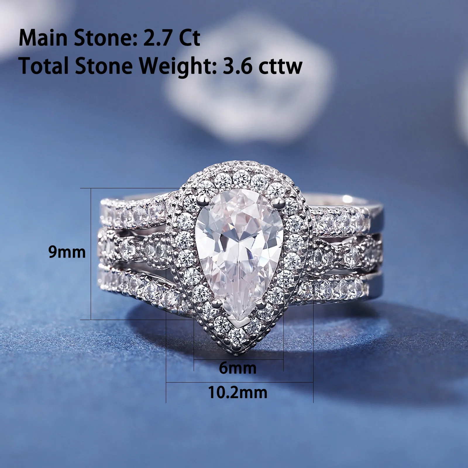 | Center Stone Size | 6*9mm, pear cut,2.7ct |