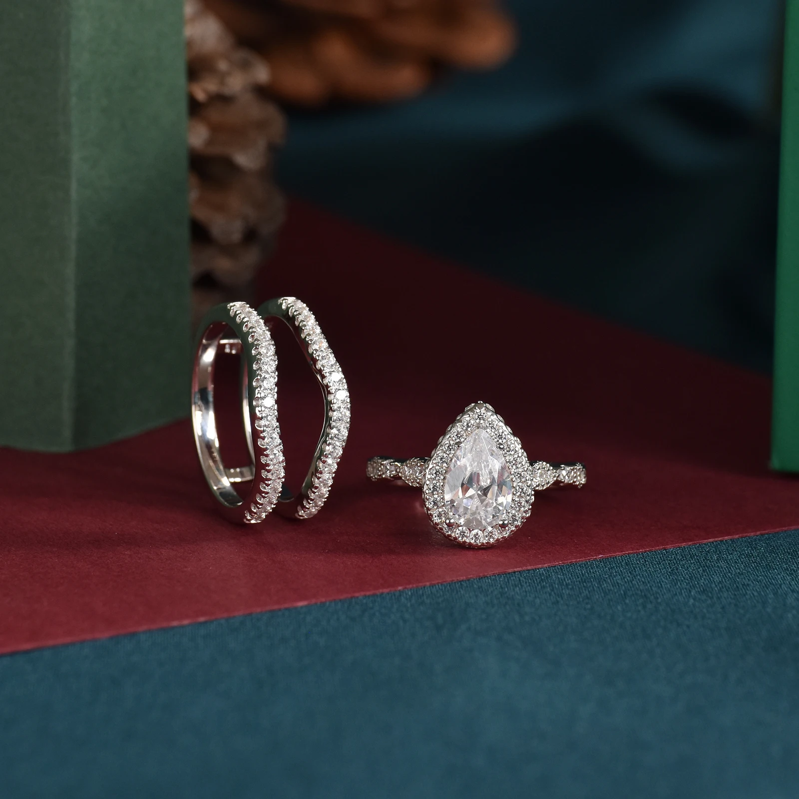 Newshe Halo Pear Cut AAAAA Cubic Zircon 925 Sterling Silver Infinity Engagement Rings For Women Wedding Band Bridal Ring Set