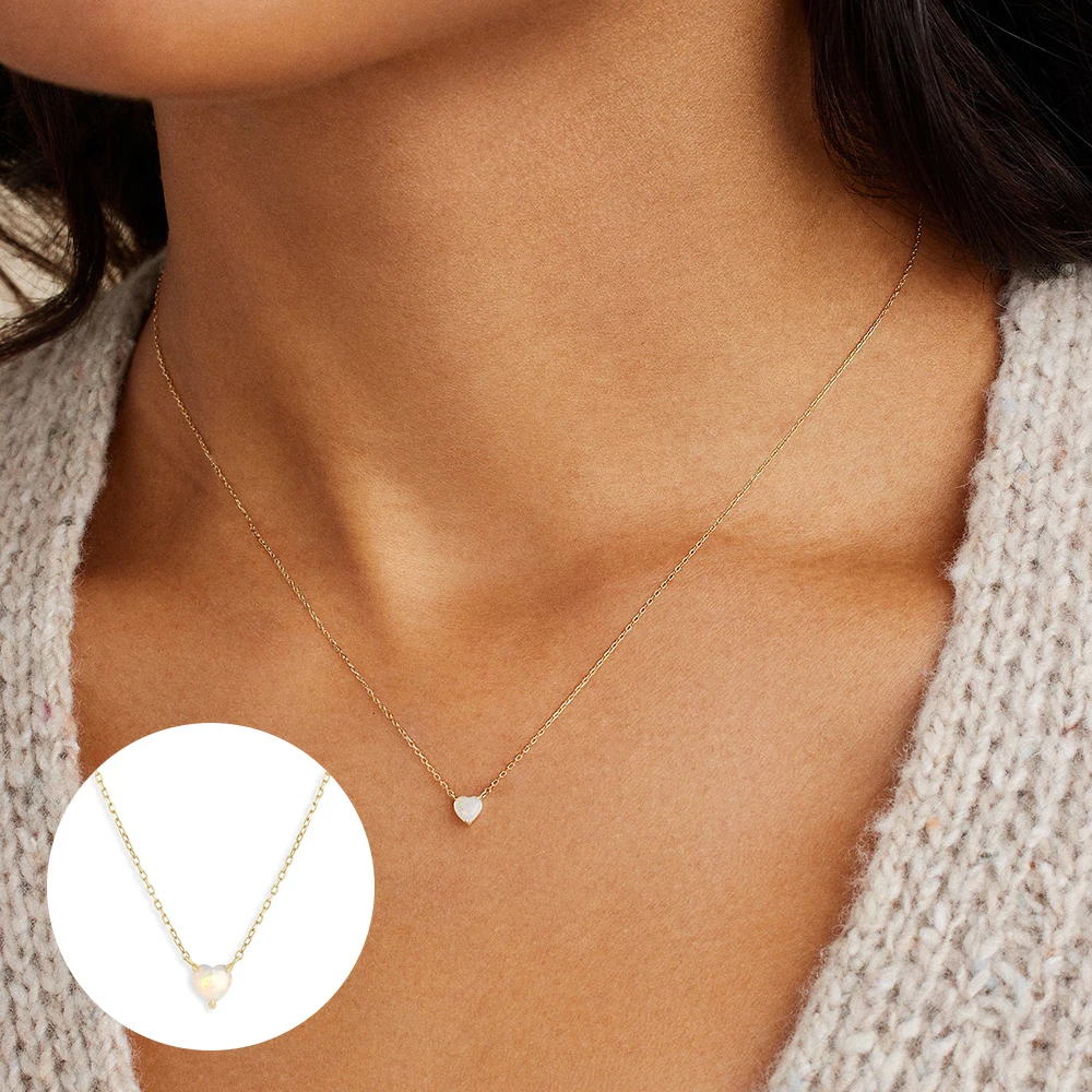 925 Sterling Silver Round Opal Necklaces Simple Women Chain Necklaces Female Anniversary Gifts Silver 925 Jewelry (Lam Hub Fong)