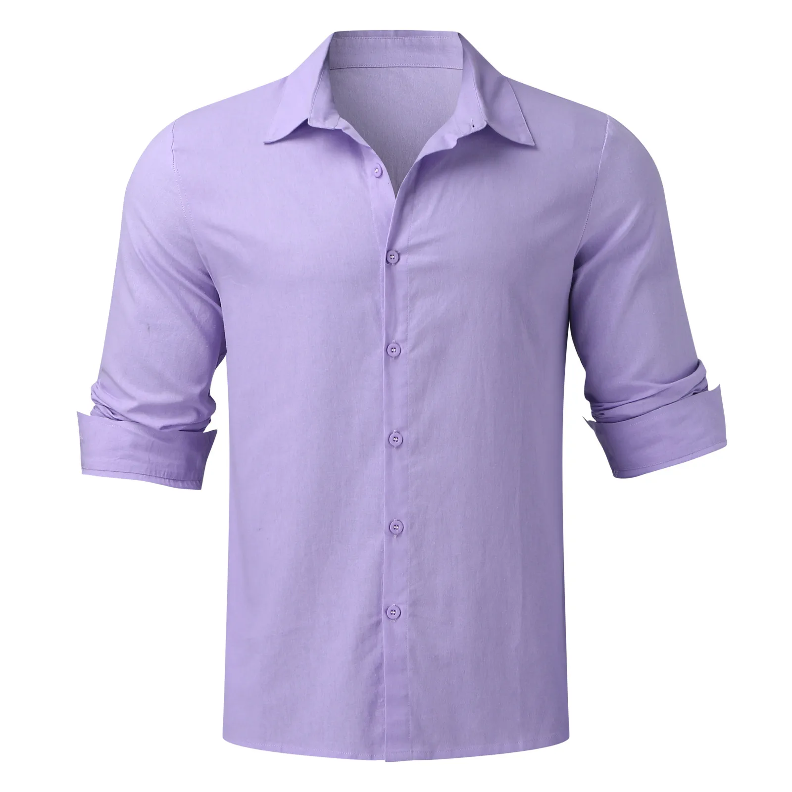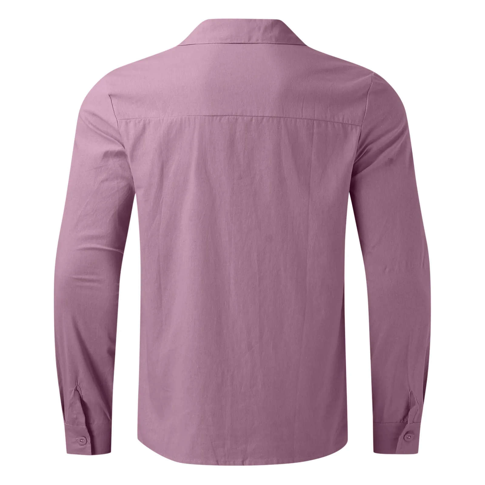 Male Summer Cotton Linen Solid Casual Plus Size Loose Shirt Mens Turn Down Collar Long Sleeve Shirt