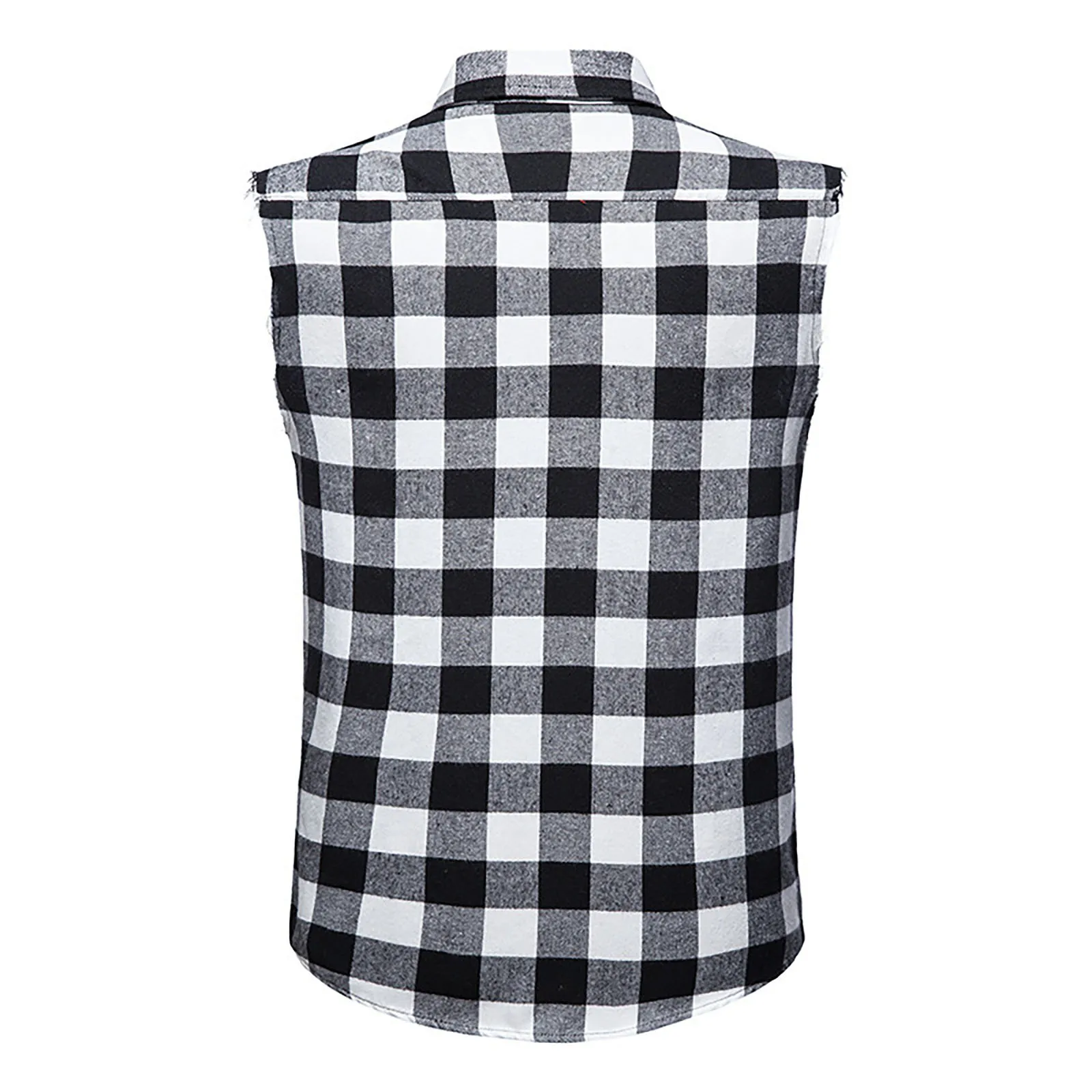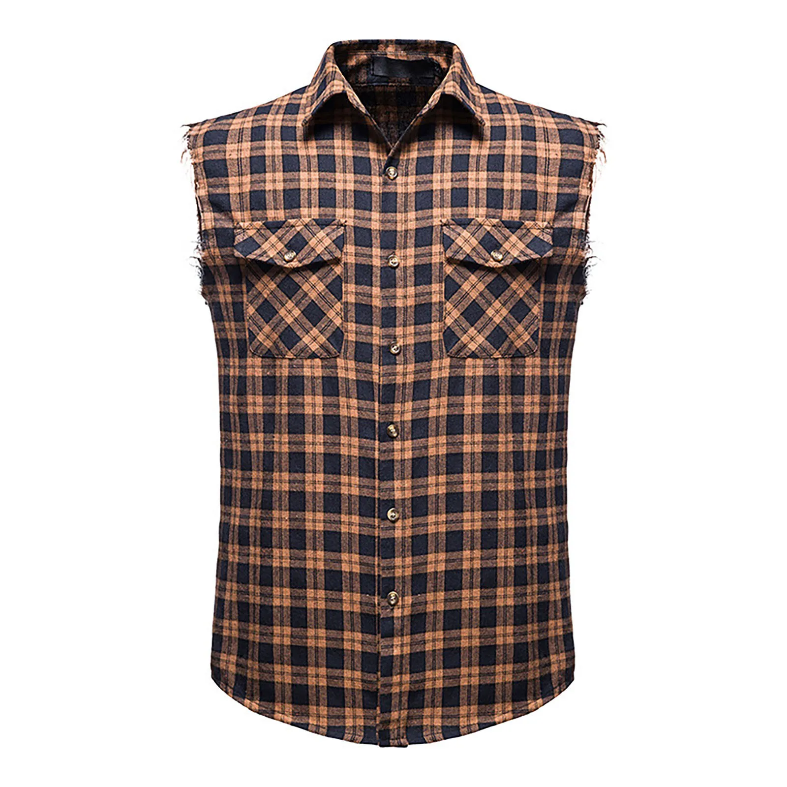 Designer Spring Summer Men’s Casual Loose Stand Collar ShirtsCasual Plaid Shirt Sleeveless Plus Size Tank Top