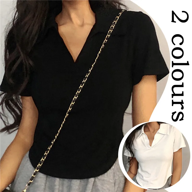 Features:Women’s Short Solid Color Casual Short Sleeved T-shirt Retro Versatile Top