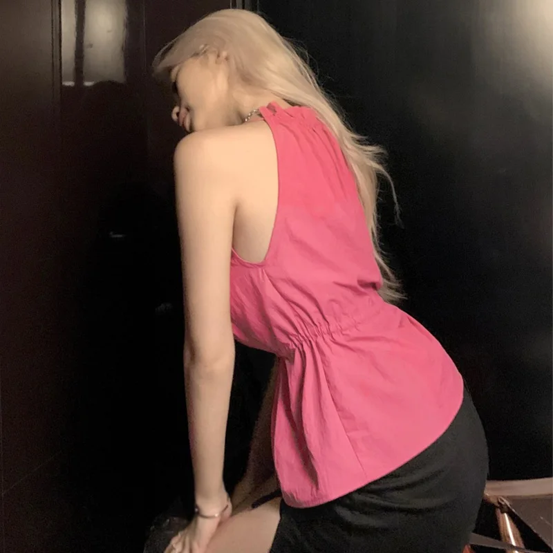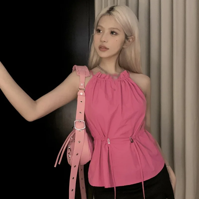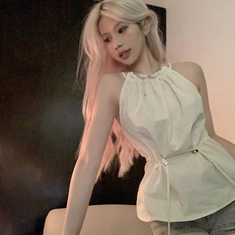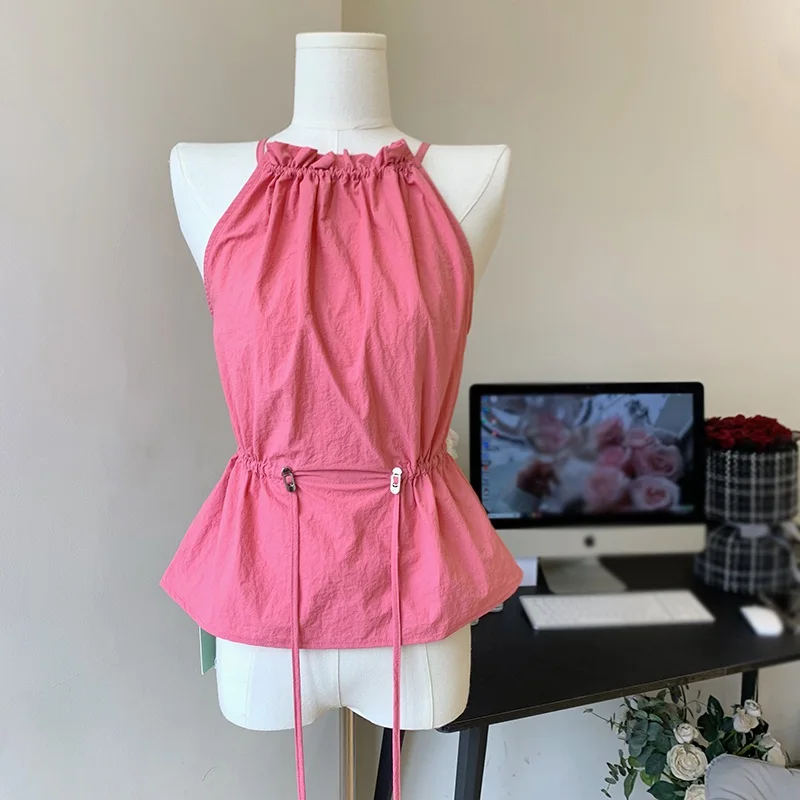 1. Halter neck, summer, outer, drawstring belt decorative vest.