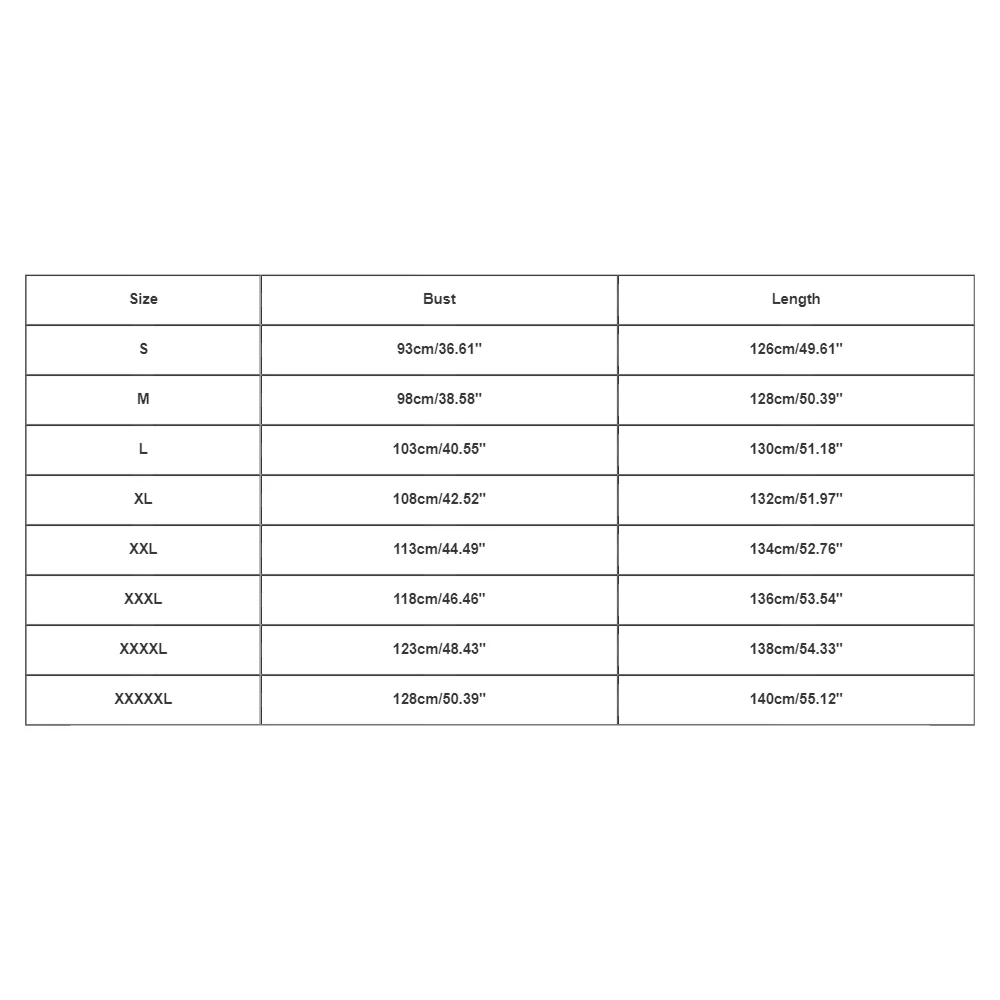 | Size:XXXXXL | Bust:128cm/50.39” | Length:140cm/55.12” |