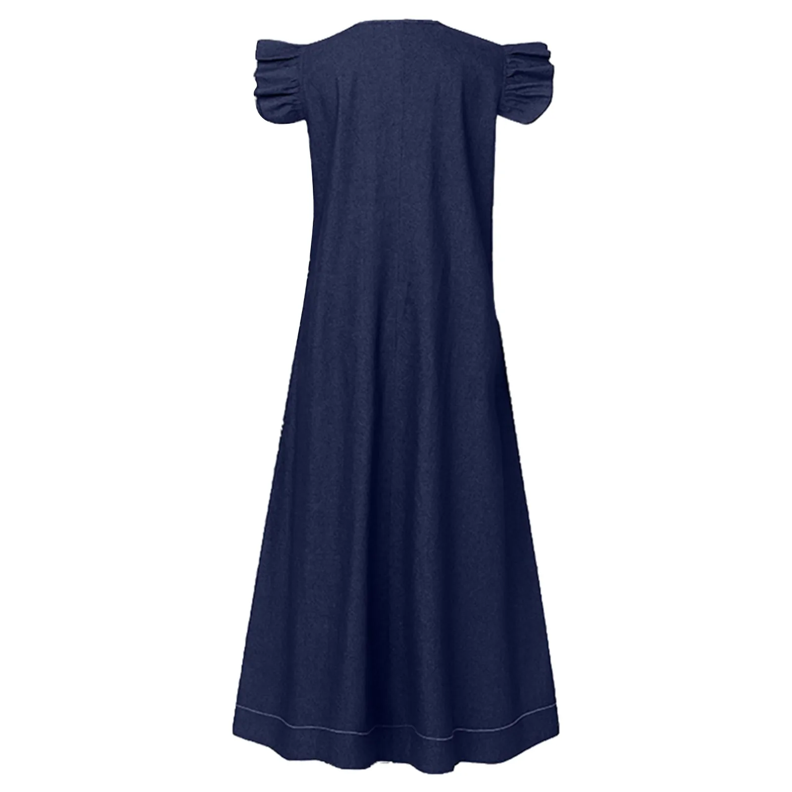 Denim Solid Temperament V Neck Bohemian Loose Size Long Dress