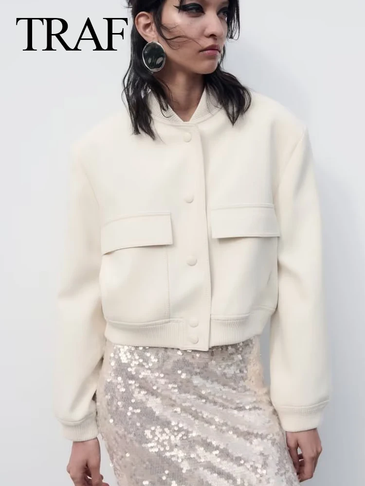 Willshela Women Fashion Solid Bomber Jackets Coat With Pockets V-Neck Single Breasted Long Sleeves Female Chic Lady Outfits