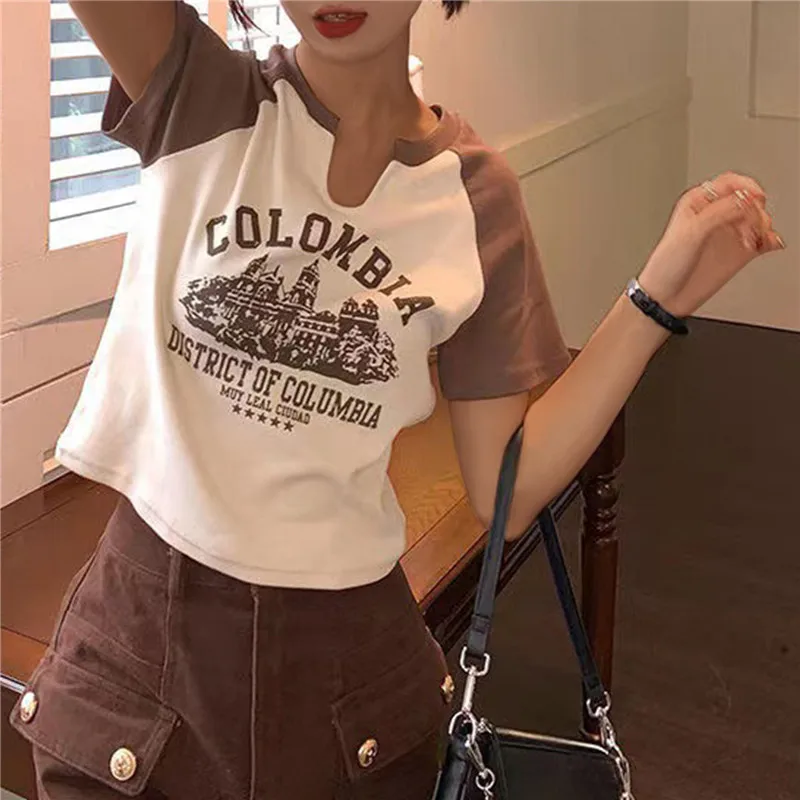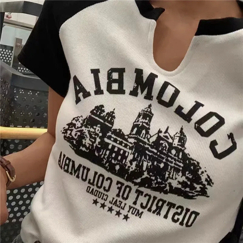 Features:Women’s Printed Short Sleeved T-shirt Retro Sweet Top