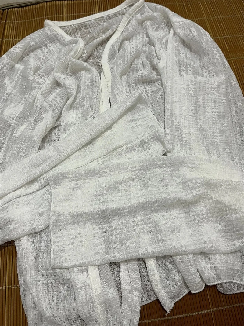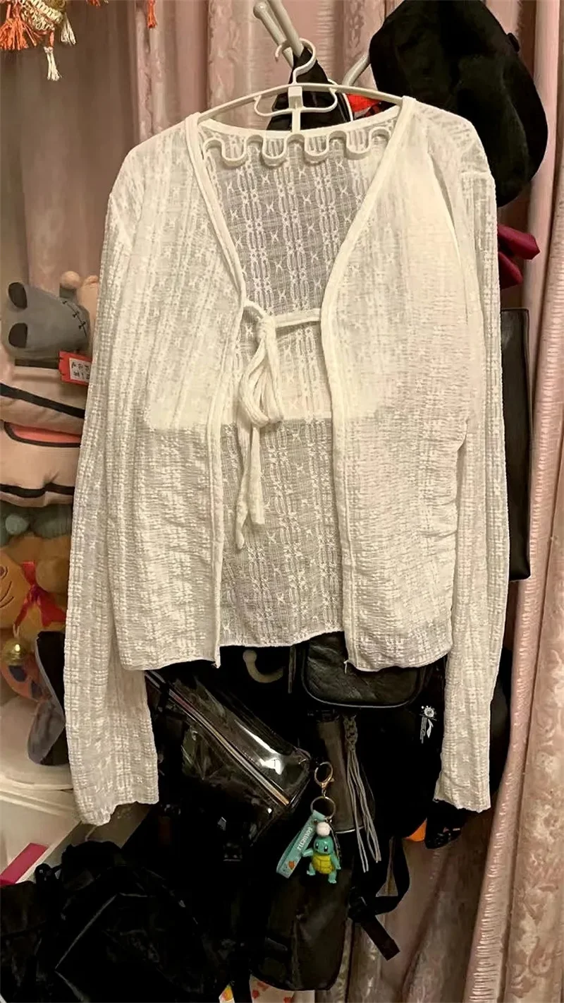 Women Summer Sun Protection Coat Lace Bow Ruffle Cardigan Shirt Female Blouse Tops for Woman Covers Blusa White Y2K Korean Shirt