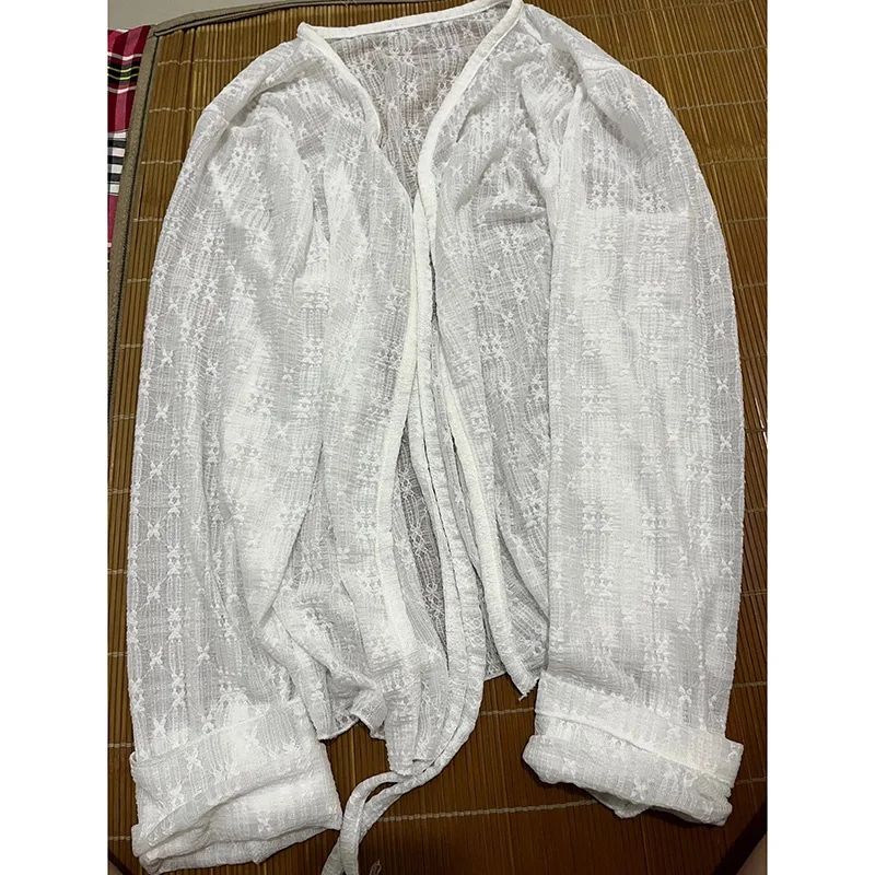 Women Summer Sun Protection Coat Lace Bow Ruffle Cardigan Shirt Female Blouse Tops for Woman Covers Blusa White Y2K Korean Shirt