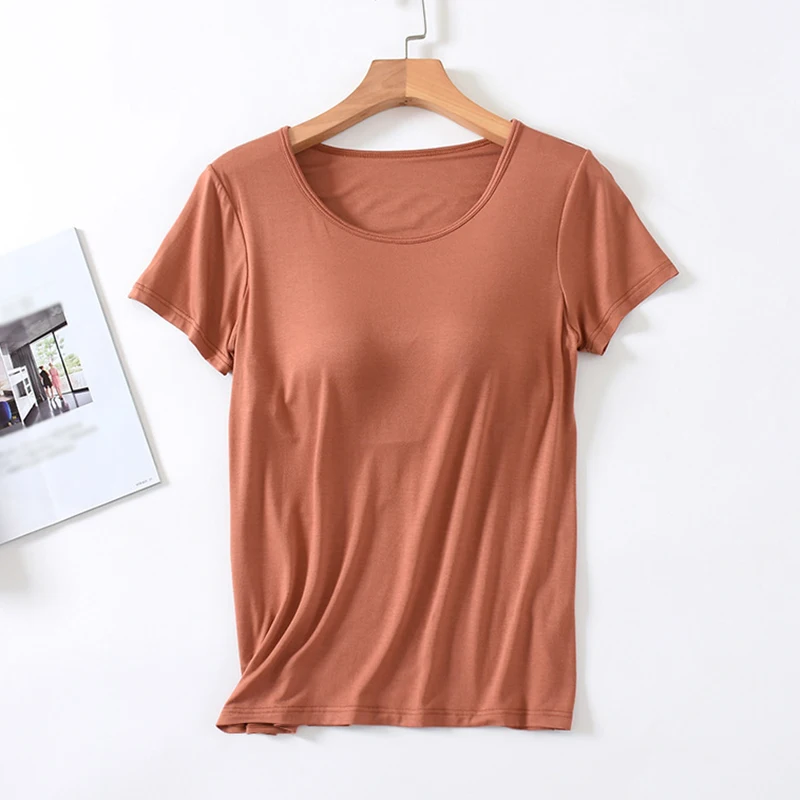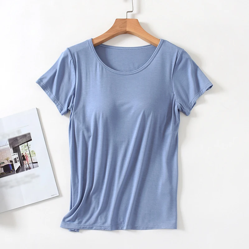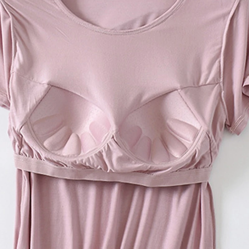 1. Korean version, slim, bottoming shirt, home wear with chest pad, short-sleeved long T-shirt, solid color T-shirt,